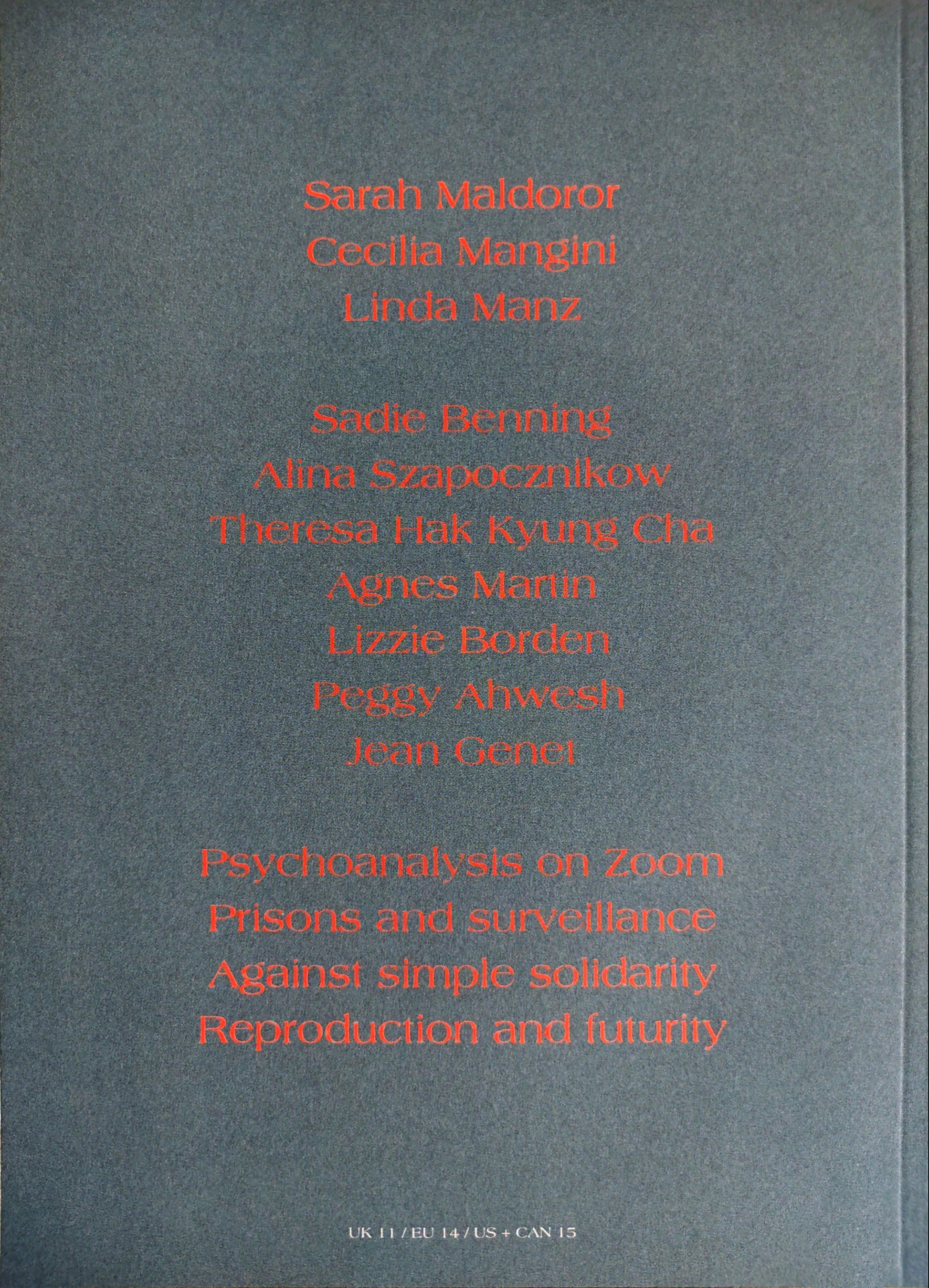 Including writing about Theresa Hak Kyung Cha, Linda Manz, Sadie Benning, Sarah Maldoror, Cecilia Mangini, Agnes Martin, Peggy Ahwesh, Kira Muratova, Alina Szapocznikow, Jean Genet and more…