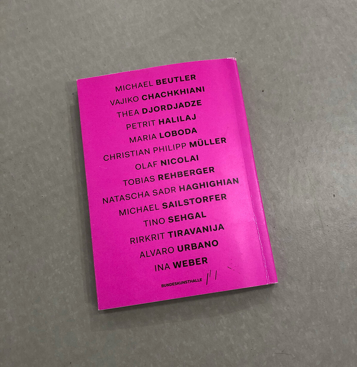Mit Arbeiten von Michael Beutler, Vajiko Chachkhiani, Thea Djordjadze, Petrit Halilaj, Maria Loboda, Christian Philipp Müller, Olaf Nicolai, Tobias Rehberger, Natascha Sadr Haghighian, Michael Sailstorfer, Tino Sehgal, Rirkrit Tiravanija, Alvaro Urbano und Ina Weber
