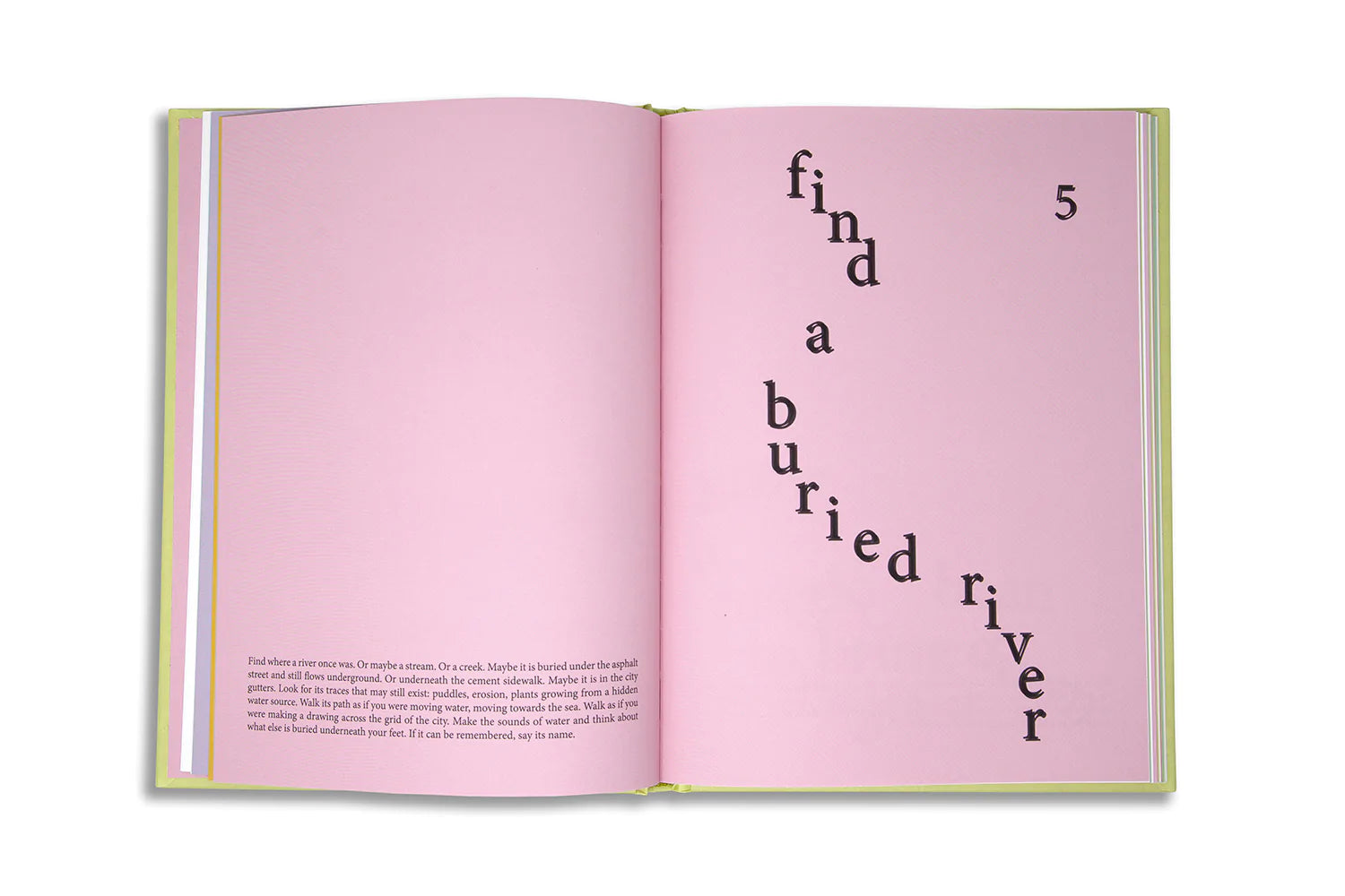 In the tradition of conceptual action books, David Horvitz has created a long poem inviting us to delve in the depths of the imagination. To play and learn with the notion of «guide someone through the sounds of the world around you» and discover the immateriality of the elements that constitute the world.