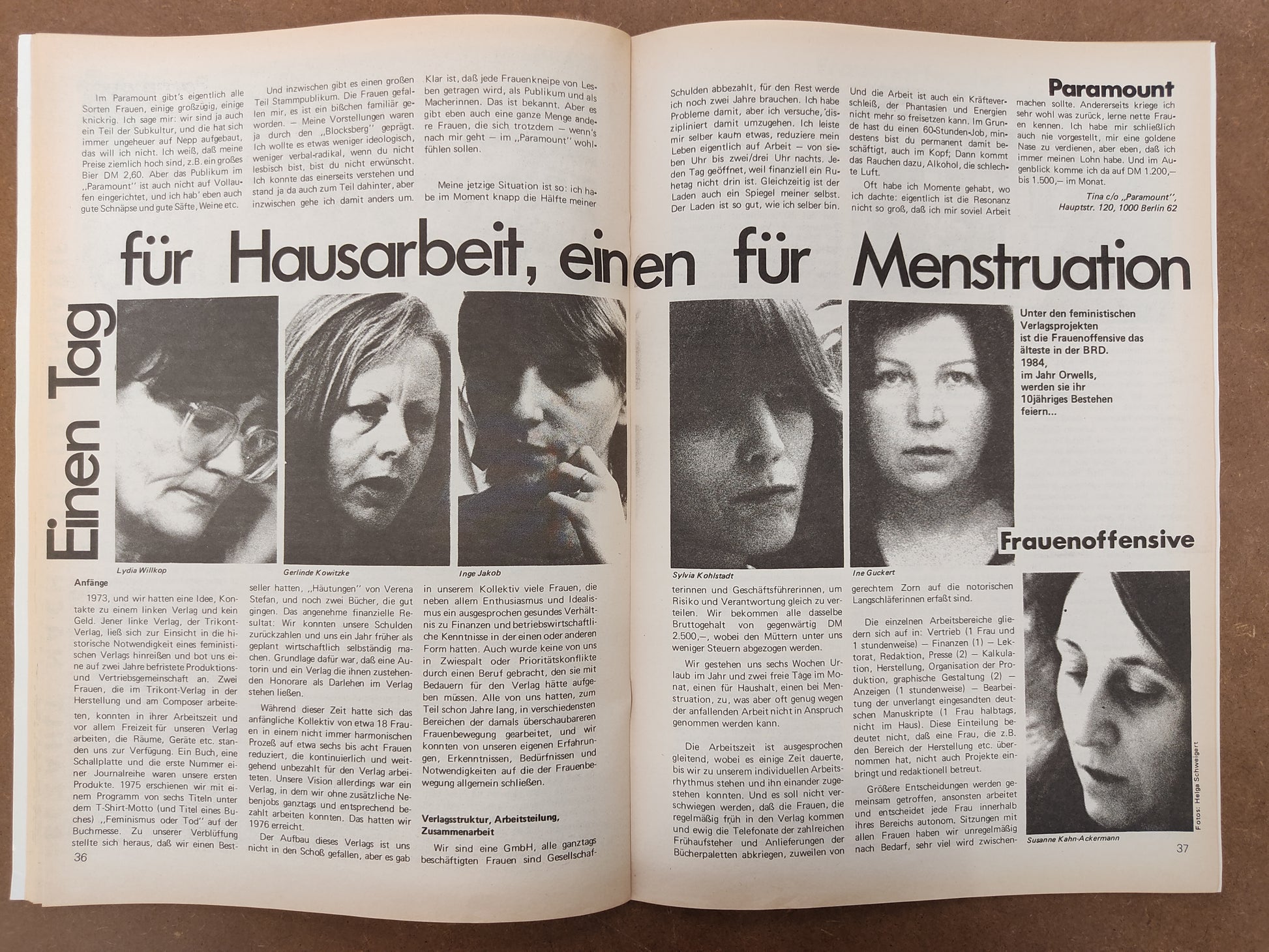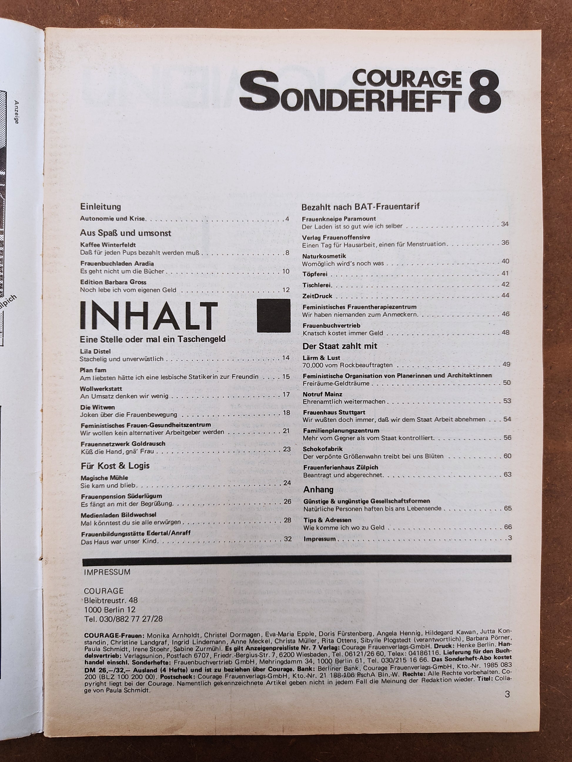 Courage was founded in 1976 by a group of ten Berlin women from the Kreuzberg Women's Centre who wished to create an autonomous leftist-feminist newspaper.