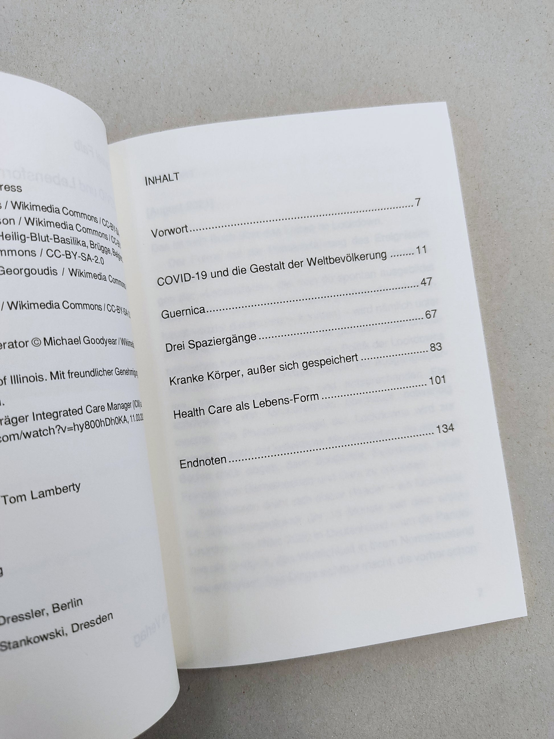 In Form von Essays und Gedichten beschreibt Daniel Falb die Pandemie als Ereignis, das die Normalität unserer Wirklichkeit neu artikuliert und macht so die Perspektivenverschiebung sichtbar, die sich in Bezug auf (kranke) Körper vollzieht. Dabei erweitert er Giorgio Agambens Verständnis von Lebensform um den Begriff der Healthcare und zeigt, inwiefern Patient*innenakten und Apparatemendizin zum Dispositiv einer neuen, posthumanen Seele werden, die sich in maschineller Care materialisiert. »Health Care als Lebensform ist HALE-Kommunismus.«
