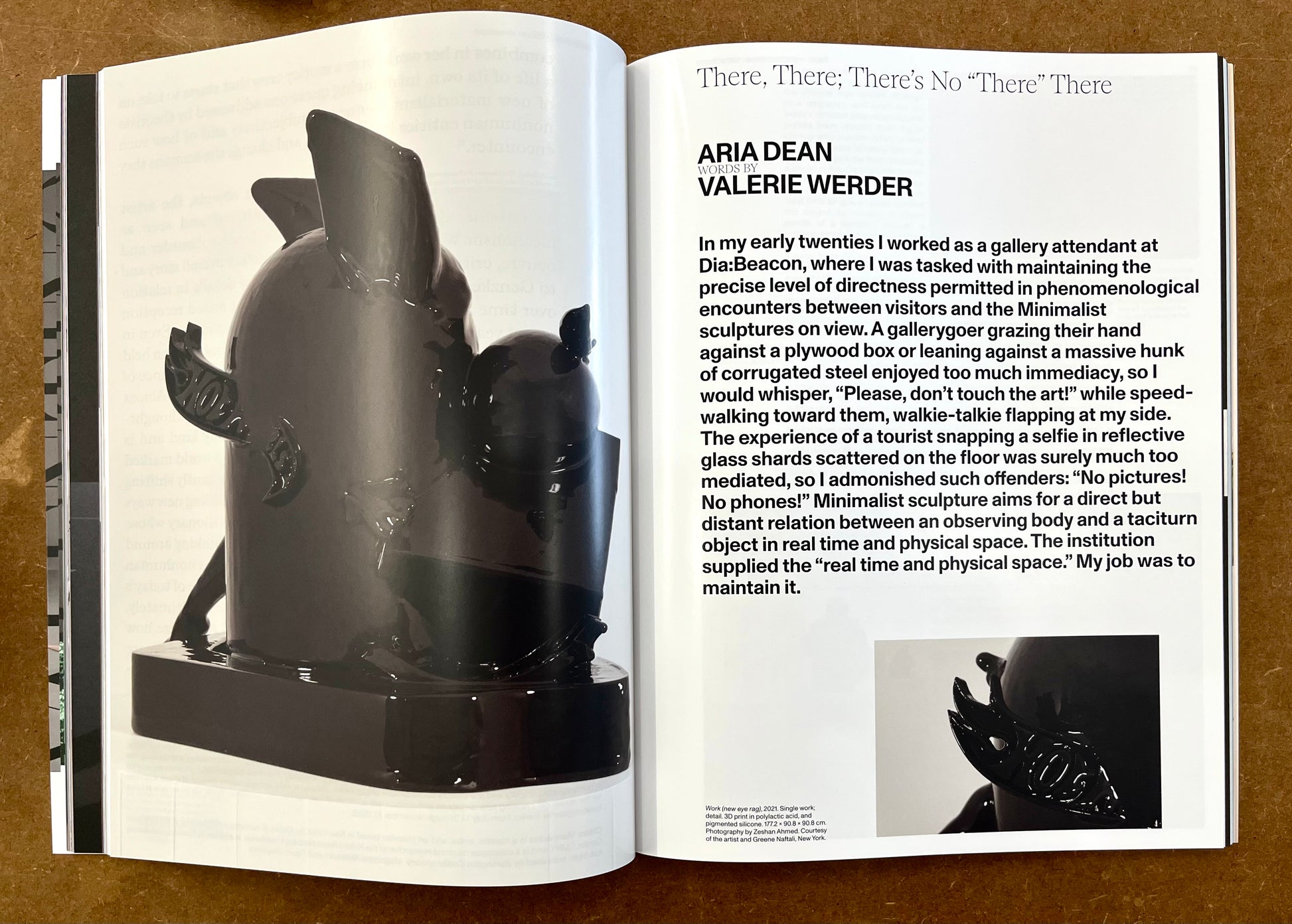 Over the past decade, sculpture as a medium has undergone considerable stress and reappraisal. It has been hybridized into increasingly installational (in tandem with set design and display) and performative forms. In this regard, we have noted that artists using sculpture as their primary medium today — from Aria Dean to Mimosa Echard to Anne Imhof — are predominantly female. We have also noticed greater attention being paid to sculpture in the context of fashion, the work of Craig Green and the designer duo Ottolinger among recent examples.