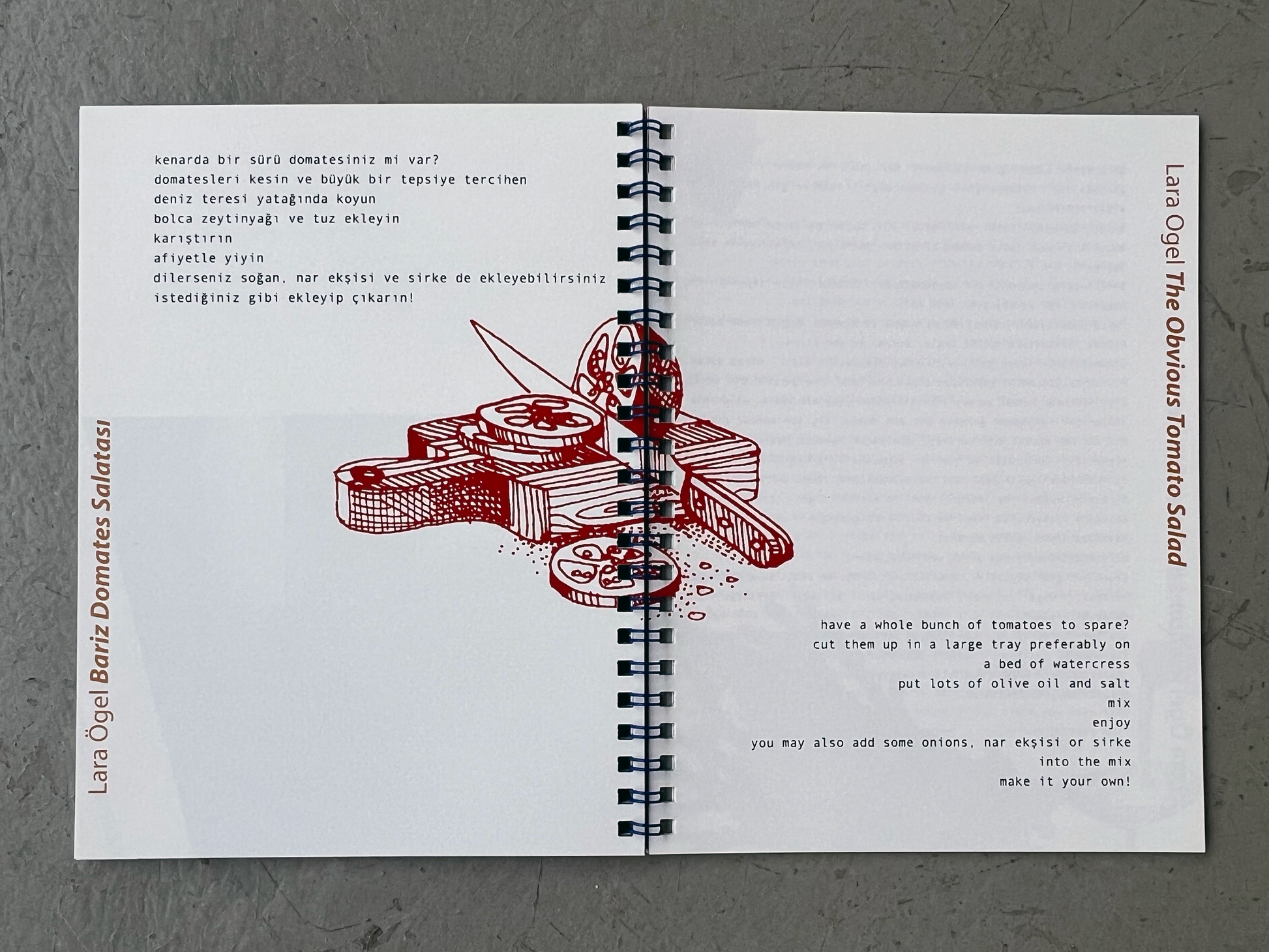 Garp Sessions Cook Book brings together 20 recipes by Garp Sessions participants from 2019-2021. Producing and digesting food as well as thoughts and materials together is a key aspect of the programme that takes place in a very specific locality. The first morning of the 10 day programme kicks off with a food market in Babakale. This is the main opportunity for food shopping as the village does not have any big shops, supermarkets, bakeries or butchers. This negotiation process acts as an introduction to the village and an ice-breaker. Then, the participants cook collectively using the local produce provided on this very first day of the programme. Cheese, vegetables, easy to store grains, and surely fish and seafood as Babakale is a fishing village, are main ingredients. All the recipes are inspired by and produced with the local produce and context in mind.