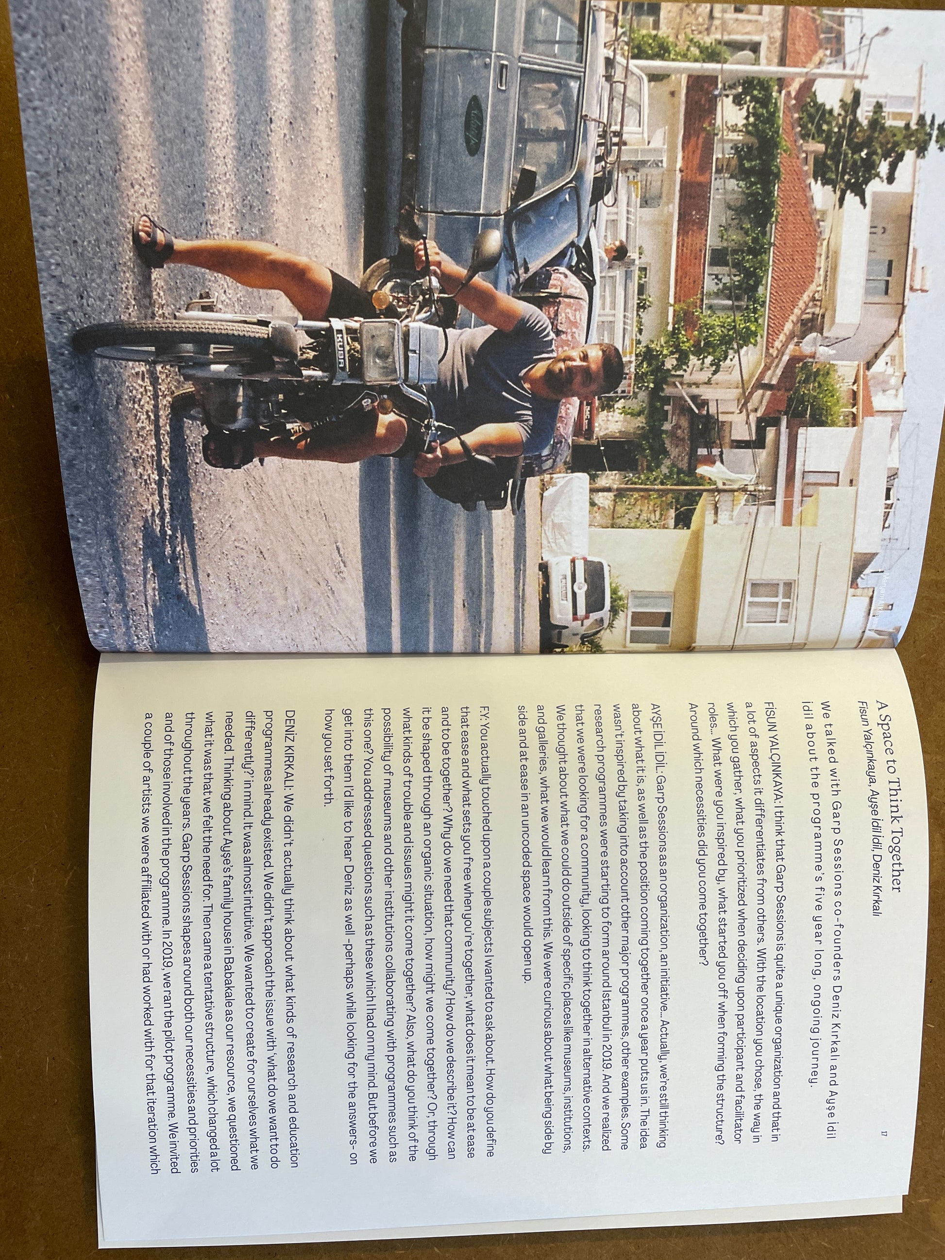 Garp Sessions is a summer programme that was started in 2019 by Ayşe İdil İdil and Deniz Kırkalı. Taking place yearly in Babakale, a fishing town in Turkey, it brings participants together around different themes every iteration. Garp Sessions: Documentation and New Commissions 2019-2022 brings together texts and visual material from past participants Ada Özsar, Ali Yalgın, Amelie Wedel, Aslı Özdoyuran, Ayşe Draz, Burak Taşdizen, Cem Örgen, David Horvitz, Ekin Can Göksoy, Ezgi Tok, Ezgi Hamzaçebi & Lara Ögel, Gizem Karakaş, Larissa Araz, Maryam al Khasawneh and Ulufer Çelik, neither absent nor present participant Ayşe Köklü, as part of nocturne platform Gerko Egert, and a conversation between Garp Sessions and Fisun Yalçınkaya. It also features interviews with Cooking Sections, Knifemaker Doğan Tosun, and Babakale Beautification, Culture, and Solidarity Association. The book aims to create further opportunities for dialogue between past participants from different years as well as members of our extended Garp Sessions community. It documents and reflects on the sessions in Babakale, produces new works in response to these encounters, and includes voices from the village. In that sense, it is a documentation as well as it is a commissioning platform.