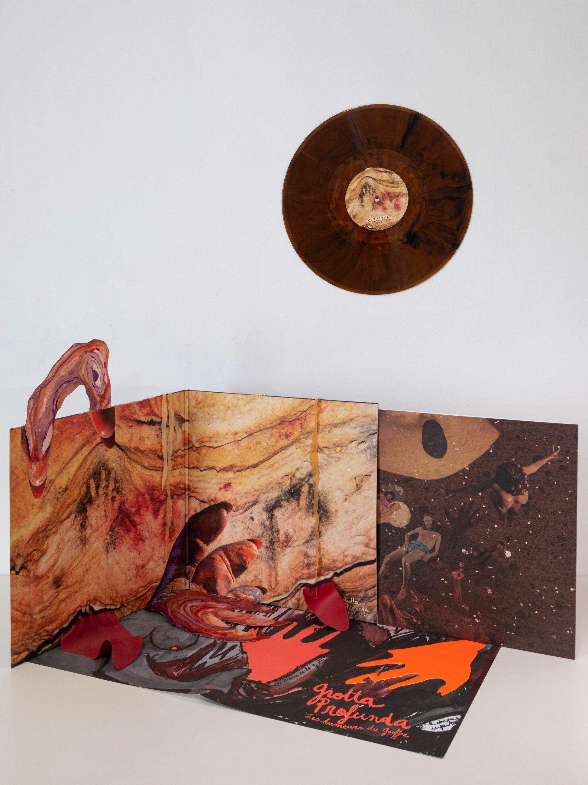The LP features the music of the film installation Grotta Profunda Approfundita that the artist produced for the Venice Biennial curated by Christine Macel, along with a booklet with a text by John Welchman and a brochure with lyrics of the songs written by Pauline Curnier Jardin.