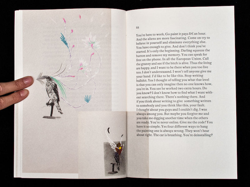 The publication collects the artist’s writing alongside his most recent series of drawings “Several birds fly away when they understand it”. Both the texts and drawings link together history and fantasy, reality and absurdity; a dichotomy at the core of the artist’s practice.
