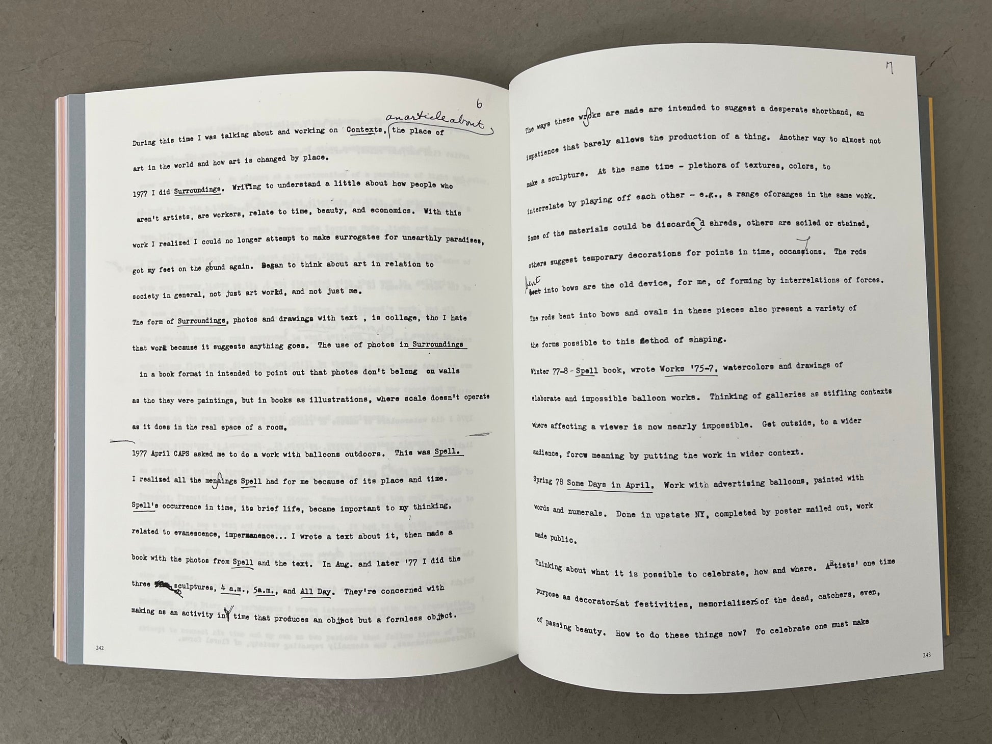 A comprehensive catalog on the work of New York artist Rosemary Mayer (1943–2014), Ways of Attaching provides an overview of the artist’s work, moving from early conceptual experiments of the late 1960s through to textile sculptures and drawings made in the early 1970s, before focusing on propositional and durational performances and temporary monuments made from 1977 to 1982.