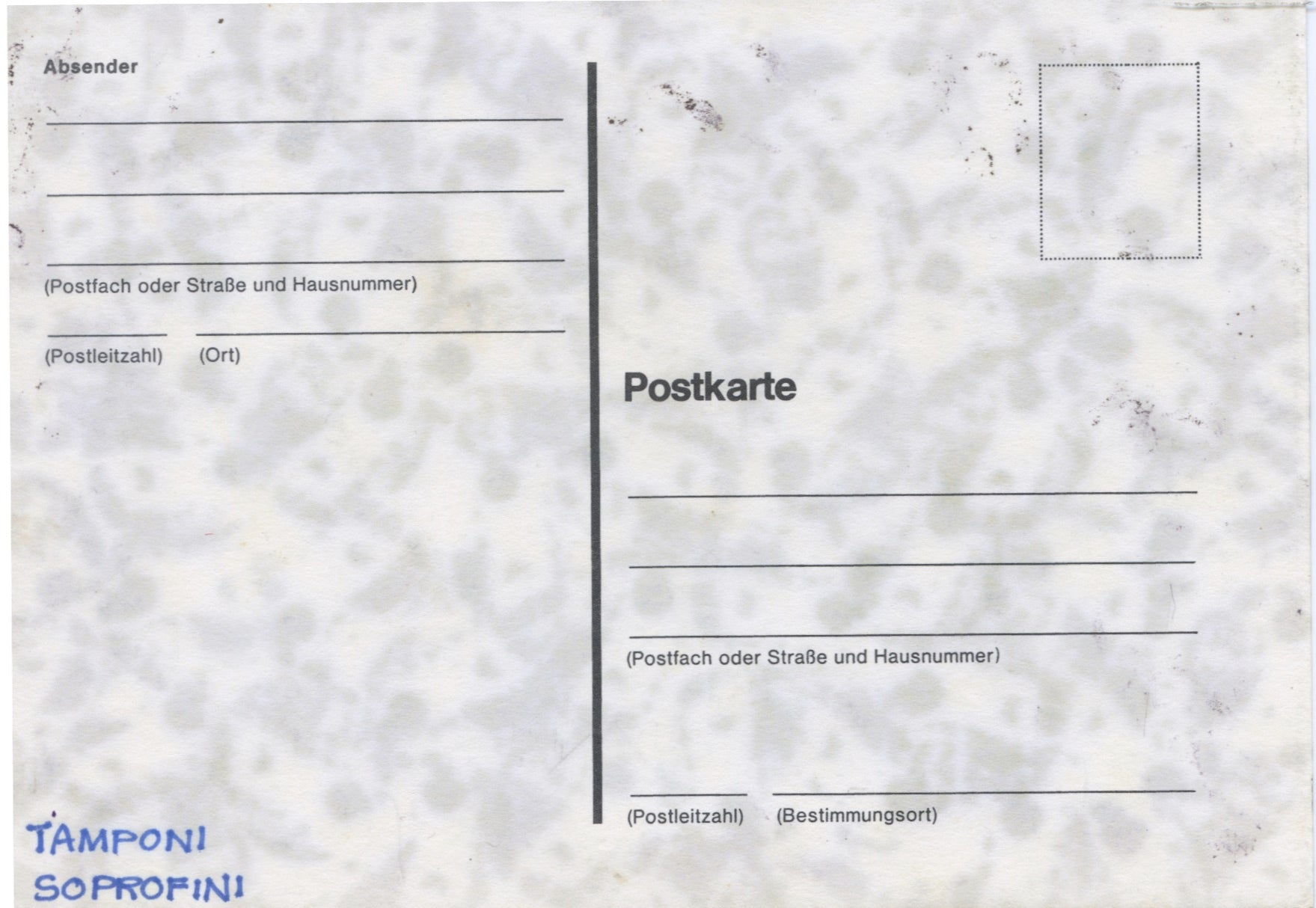 Original postcard created with wine bottle corks and stamp pad inks from 1980.