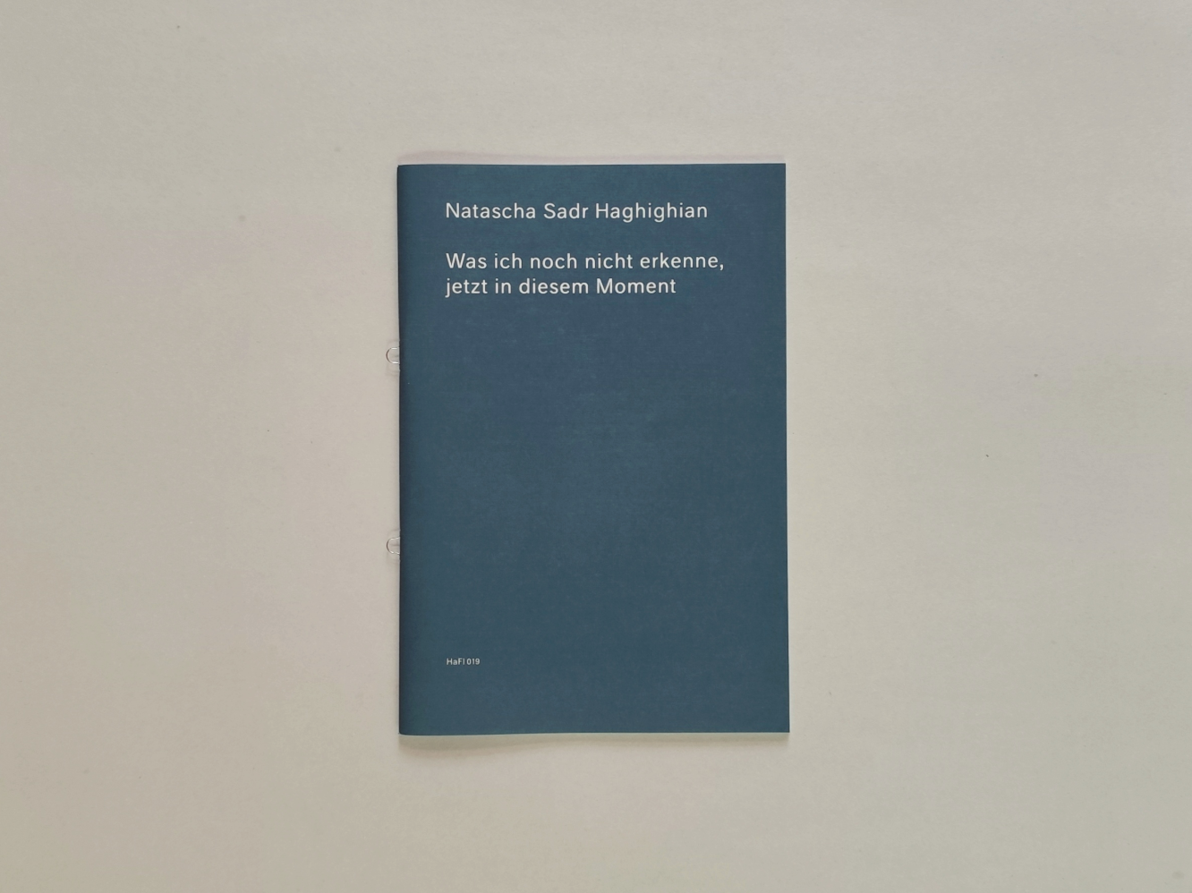 In ihrem Text „Was ich noch nicht erkenne, jetzt in diesem Moment“ setzt sich Natascha Sadr Haghighian mit der Dialektik des Hinsehens im deutschen strukturellen Rassismus auseinander, indem sie auf das Wie und Warum des „Nicht-Sehens“ des NSU (der neonazistischen Organisation, die von 2000 bis 2011 in Deutschland rassistische Morde begehen konnte, ohne „entdeckt“ zu werden) zurückkommt. Der Text zeigt Modi des strategischen Ignorierens und Erkennens auf, die im strukturellen Rassismus wirken. Sadr Haghighians Interesse an Erkennen/Anerkennung (recognition) auf eine längere Studie über Sehweisen als politische Handlungen zurück, in der sie versuchte, Sehweisen aufzuspüren oder zu entwickeln, die sich dominanten oder suggerierten Sichtweisen entziehen. Das „Verirrte Sehen“, das nicht geradlinige Sehen, wurde zu einer dieser Sehweisen, die es erlaubt, die Aufmerksamkeit auf die Ränder zu richten, auf die Ereignisse außerhalb des Bildes, die das Bild eigentlich ausmachen. Heute versteht Sadr Haghighian diese Arten des Sehens als eine umkämpfte Verhandlung von Anerkennung und Ignoranz, die sowohl willentlich als auch bedingt ist. Bei dieser Verhandlung könnte ein Leben jenseits einer rassistischen Realität denkbar werden.
